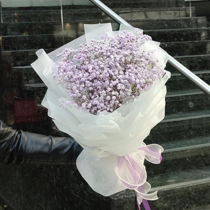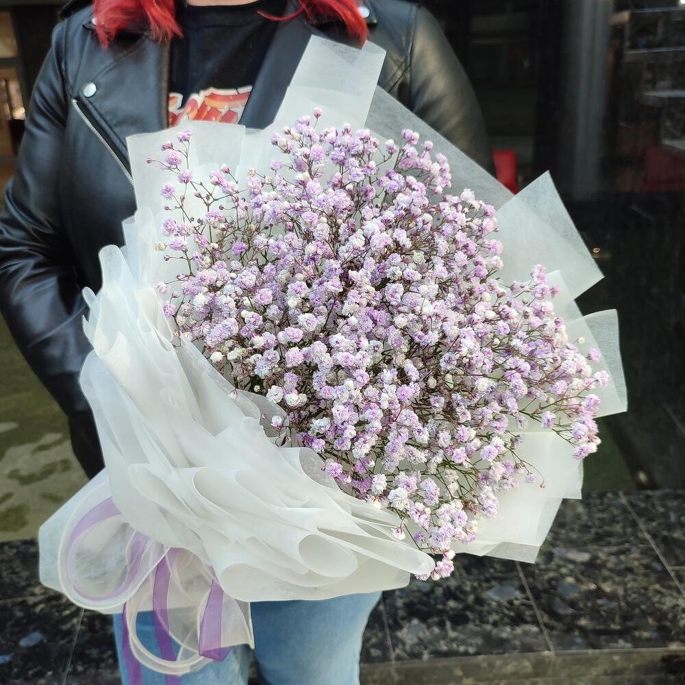 «Лавандовое созвездие» Букет из розы, гвоздики, статица и хлопка