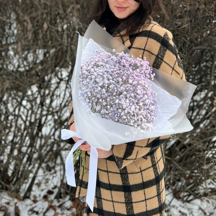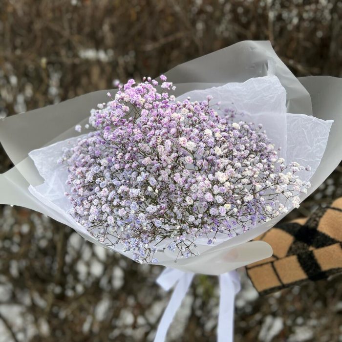 «Лавандовое созвездие» Букет из розы, гвоздики, статица и хлопка