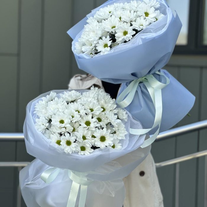 Хризантема Ромашковая – 7 шт. Оформление – 1 шт.