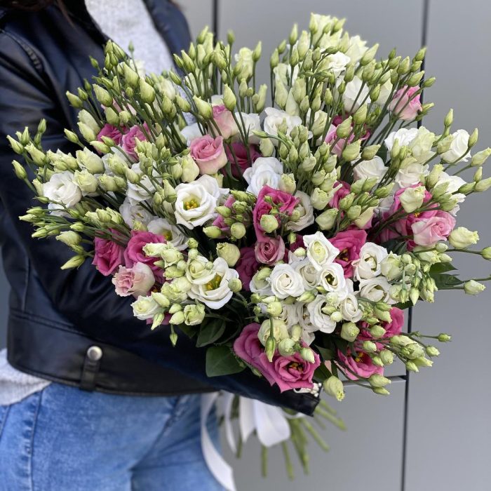 Эустома – 29 шт. Оформление атласная лента – 1 шт.