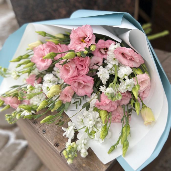Букет с маттиолой и лизиантусом