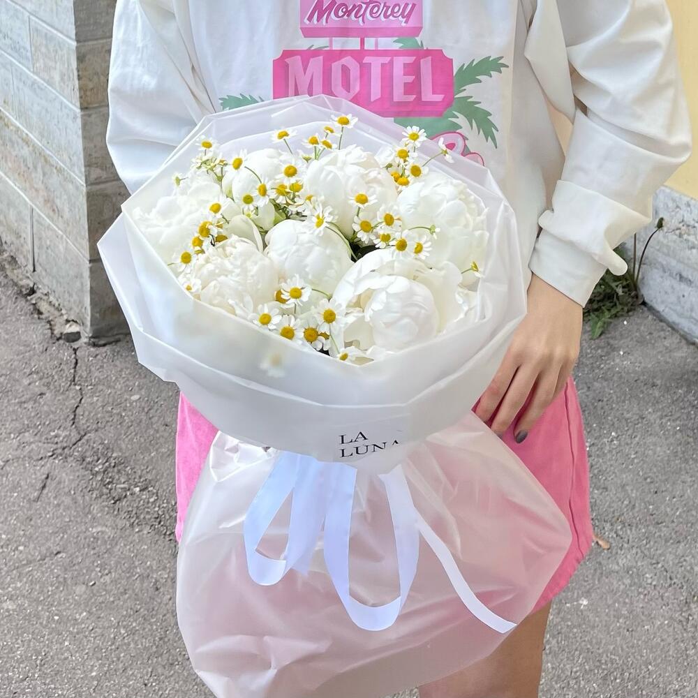 Белые пионы с ромашками