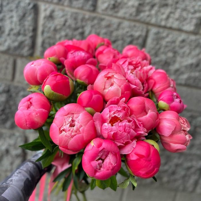 Пион коралл сансет – 21 шт.Лента атласная – 2 шт.