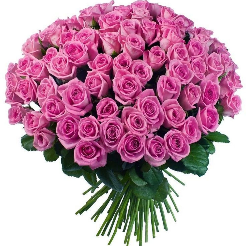 Роза розовая – 101 шт.Лента атлас – 1 шт.