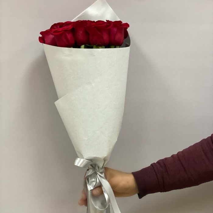 Упаковка дизайнерская – 1 шт.Лента – 1 шт.Роза Эквадор 60 см – 11 шт.