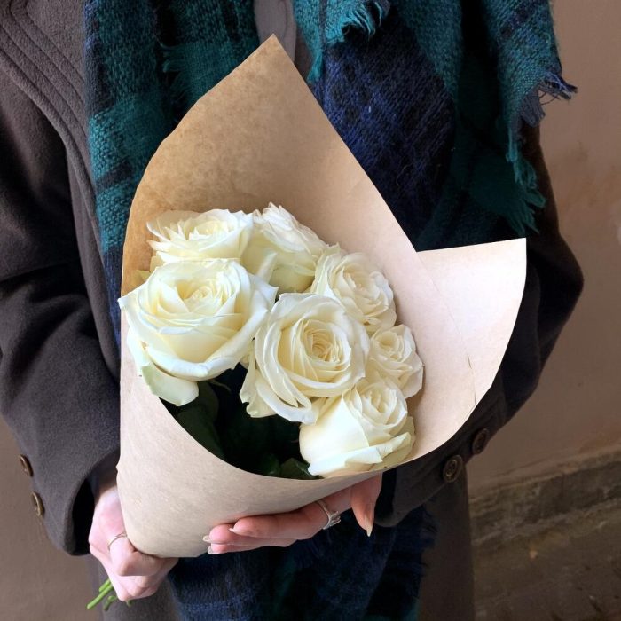 Крафт упаковка – 1 шт.белая роза россия – 7 шт.
