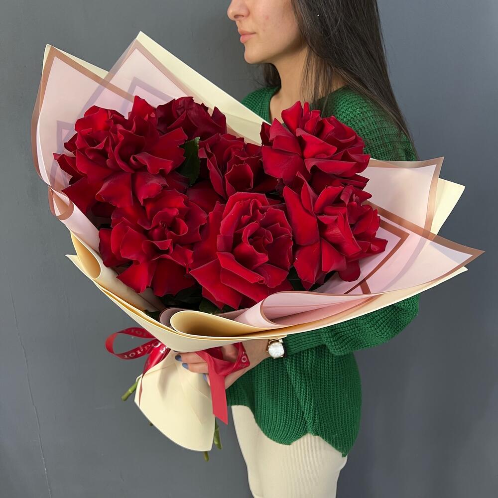 Атласная лента – 1 шт.Французская роза – 7 шт.Дизайнерская упаковка – 1 шт.