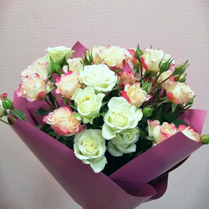 Роза кустовая – 5 шт.Упаковка – 1 шт.Лента атласная – 1 шт.