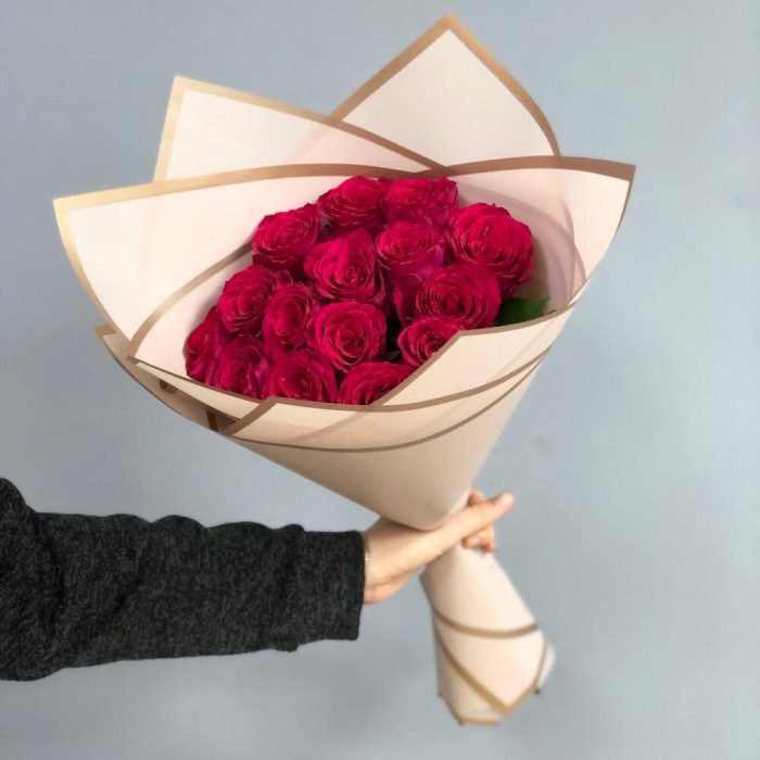 Лента атласная – 1 шт.Матовая пленка – 1 шт.роза кения – 15 шт.