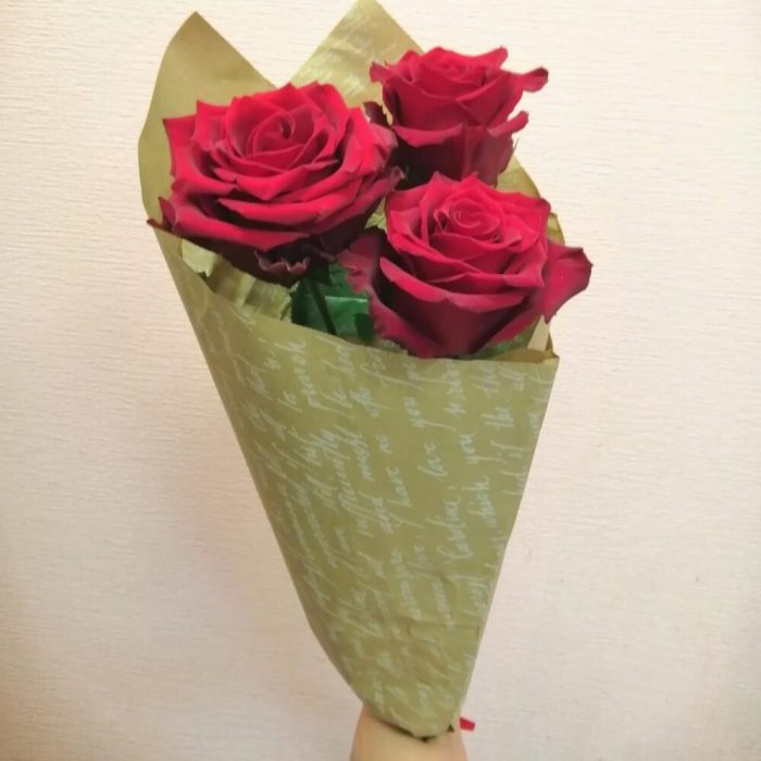 Букет из 3 эквадорских роз 60см в крафте