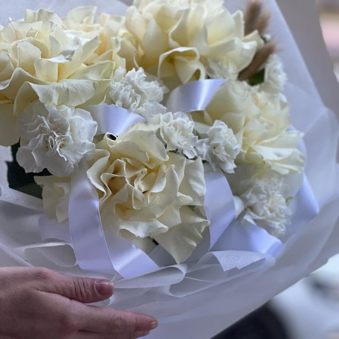 Букет из ажурных роз и гвоздик