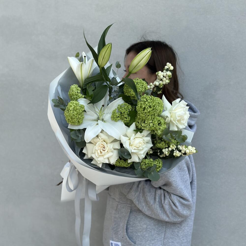 “Эвкалиптическая роскошь” гортензия и пионовидная кустовая роза