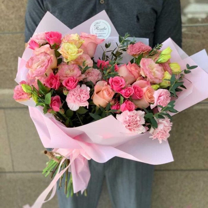 Гвоздики, Кустовые розы, Пионовидные розы, Розы