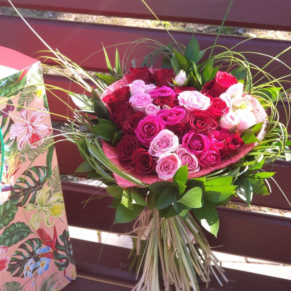 Купил цветы для своей девушки на День Святого Валентина. Она была очень рада и сказала, что таких красивых цветов у нее еще не было. Спасибо за вашу работу!