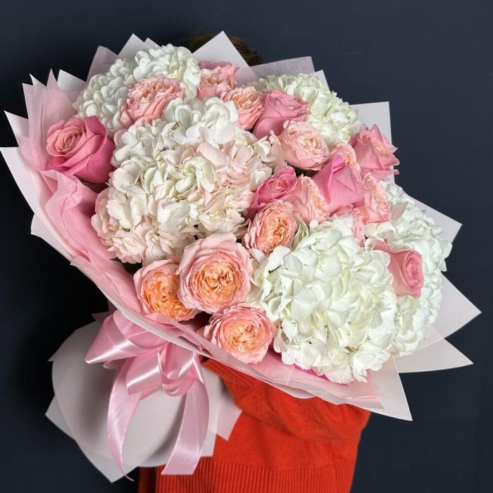 Альстромерии, Кустовые розы, Лизиантусы, Пионовидные розы, Розы, Ромашки