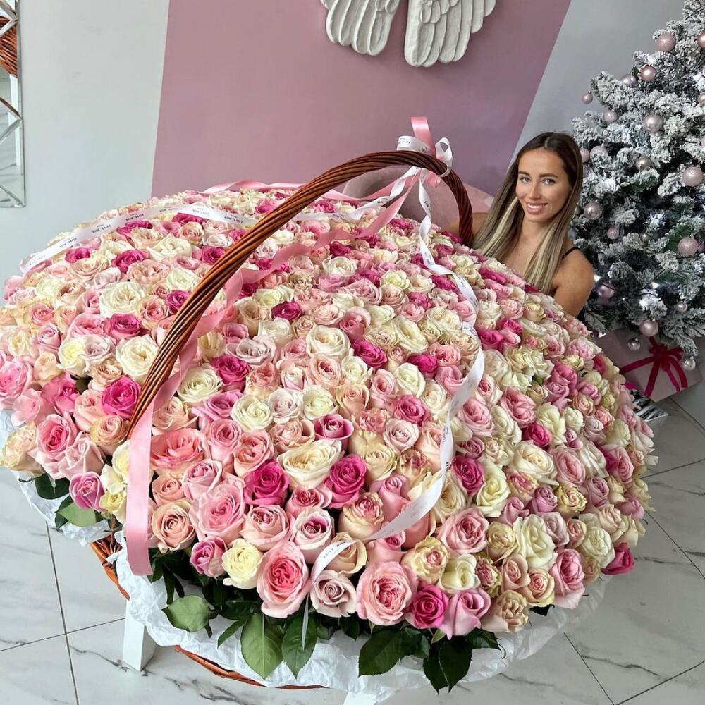Корзина «ГИГАНТ» из 501 премиальной розы
