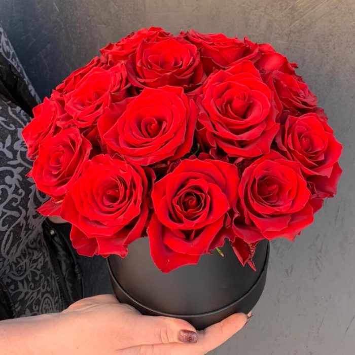 Красные розы в шляпной коробке